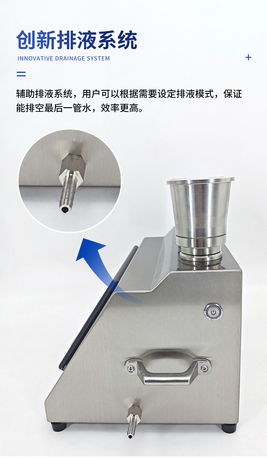 7.創新排液系統:為解決最后一軟管廢水排不凈問題,全新研發了輔助排液系統,用戶可以根據需要設定排液模式,保證能排空最后一管水,不會滴水殘留,潔凈桌面內置進口隔膜液泵,效率更高。