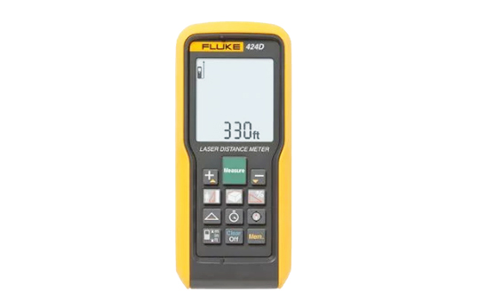 新型 Fluke 424D 多功能激光測距儀,可在更多的情況下為您節省更多的時間。其測距更長,達 100 米(330 英尺)。該測距儀配備了更大的 4 行顯示屏、內置指南針和 180o 傾斜傳感器,用于對準和高度追蹤。