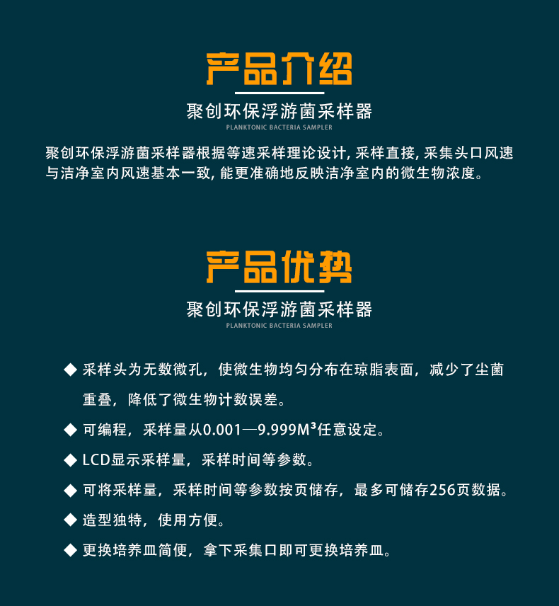 1.采樣頭為無數微孔,使微生物均勻分布在瓊脂表面,減少了塵菌重疊,降低了微生物計數誤差。