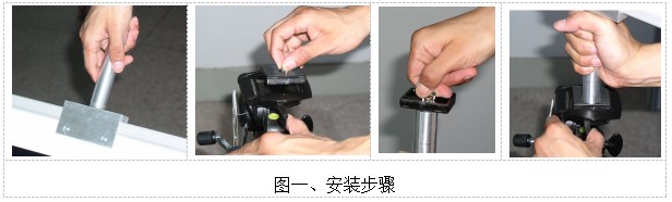 c. 取出三腳架并支起,在三腳架的頂部有一片帶螺釘?shù)脑婆_(tái),可以松開取下。取下后將其螺釘旋入手柄底部的螺孔內(nèi),然后按原樣卡回三腳架上。