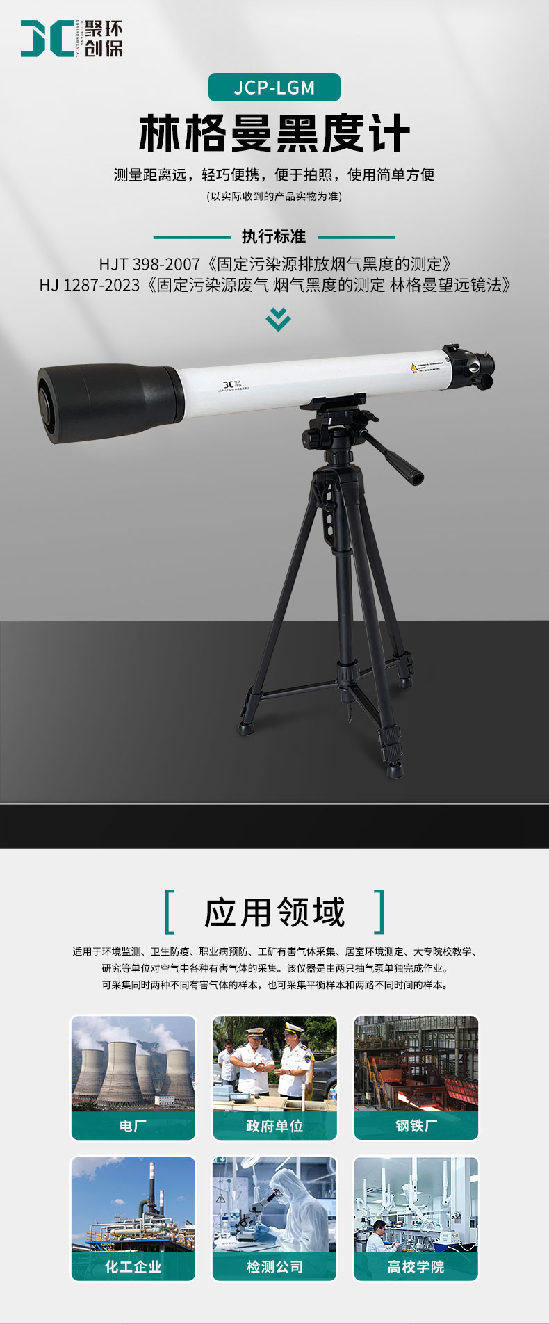 JCP-LGM為林格曼*新標準產品,觀測距離2000m,望遠鏡放大倍率20倍,是環境監測站和第三方檢測單位的優選產品。