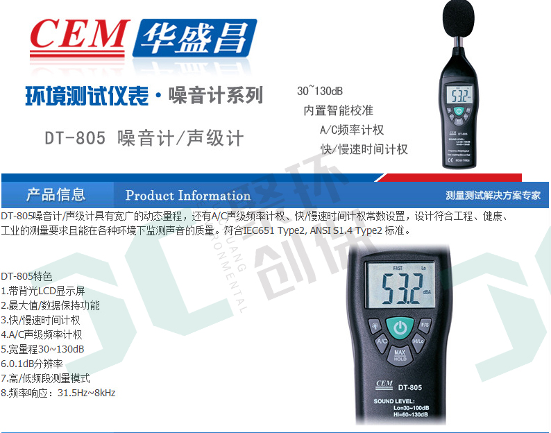DT-805系列噪聲計(jì)設(shè)計(jì)符合安全工程、健康、工業(yè)安全的測(cè)量要求且能在各種環(huán)境下控制聲音的質(zhì)量。該表符合 IEC651 type 2, ANSI S1.4 type 2標(biāo)準(zhǔn)。