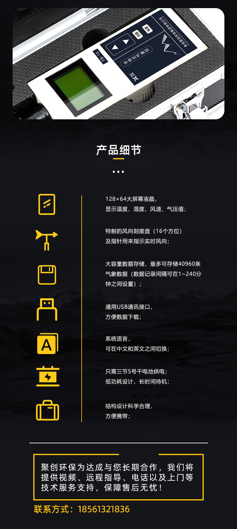 3、大容量數(shù)據(jù)存儲(chǔ),*多可存儲(chǔ)40960條氣象數(shù)據(jù)(數(shù)據(jù)記錄間隔可在1~240分鐘之間設(shè)置);