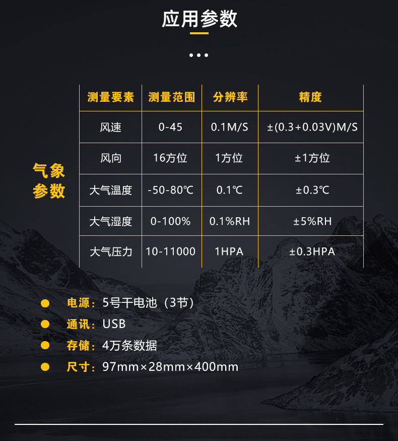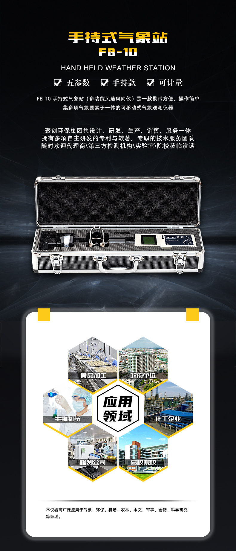 測(cè)量氣象五參數(shù)(風(fēng)速、風(fēng)向、大氣壓、溫度、濕度)選FB-10,適用于氣象站等檢測(cè)單位;