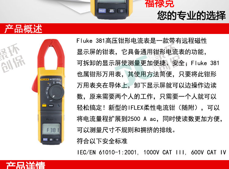 產(chǎn)品名稱:Fluke 381 遠(yuǎn)程顯示直均方根交流/直流鉗形表