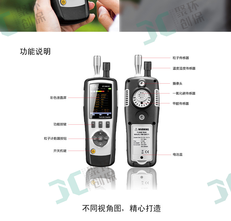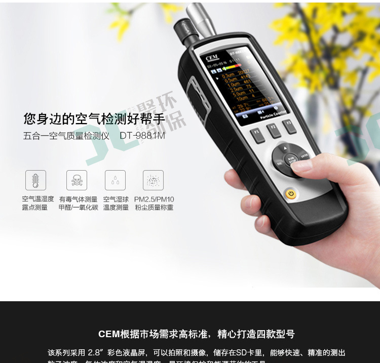 DT-9881是本公司推出的一款2.8”真彩TFT液晶顯示屏的空氣質量檢測儀。該產品具有獨創的視頻和照片拍攝功能,結合六通道空氣粉塵粒子計數、溫濕度測量、露點溫度測量及有毒氣體(CO、HCHO)檢測多功能于一體,適用于環保節能等廣泛領域,是您的工作更直觀和高效,是您更佳了解人類生活的空氣質量和環境監測與分析的好幫手。