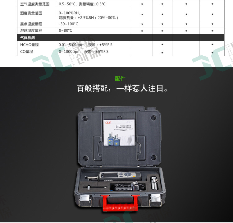 CO 測量范圍:0 ~ 1000ppm; 測量精度: ±5% ± 10ppm