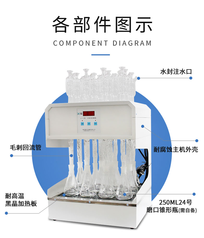 4、改進(jìn)型的玻璃毛刺回流管和散熱系統(tǒng),其良好的消解回流效果確保樣品消解結(jié)果的平行性和準(zhǔn)確性。