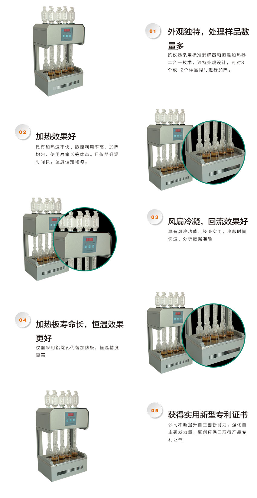 COD消解器是測定COD指標(biāo)時(shí)對水樣前處理的一款加熱裝置,其本身是不具有測定功能,該系列產(chǎn)品遵循國際標(biāo)準(zhǔn)(ISO)和國家標(biāo)準(zhǔn)(GB11914-89)的基本原則,保證其消解操作,試劑溶液的配置加入量都和國標(biāo)法一致,確保可靠準(zhǔn)確的分析結(jié)果,化學(xué)需氧量越大,說明水體受有機(jī)物的污染越嚴(yán)重。