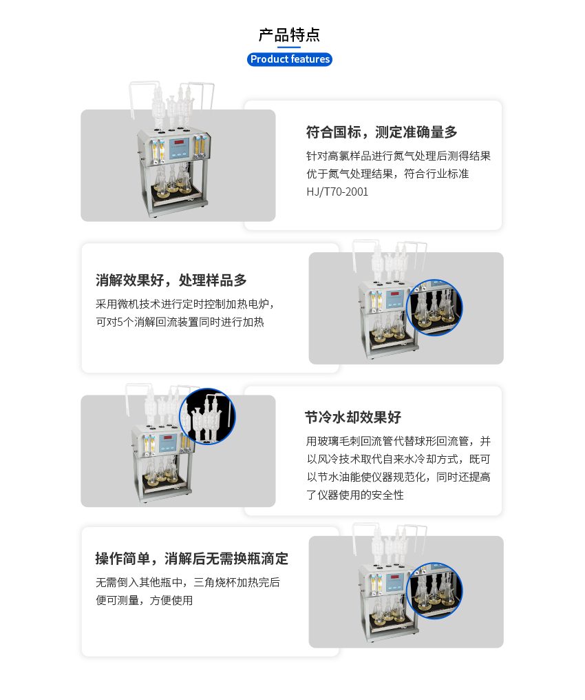 2、采用微機技術進行定時控制加熱電爐,可對5個消解回流裝置同時進行加熱。
