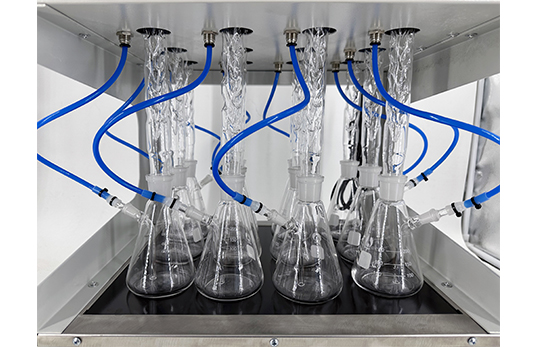 3、采用玻璃毛刺回流管代替球形回流管,并以風冷技術取代自來水冷卻方式,既可以節水又能使儀器規范化,同時還提高了儀器使用的安全性。