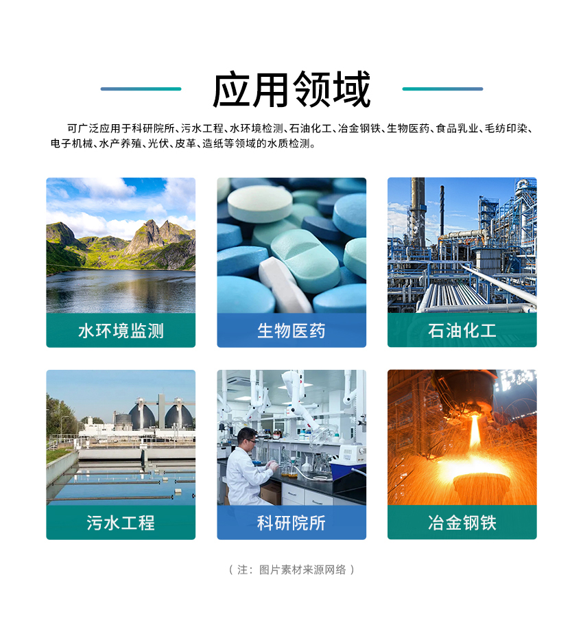 聚創JC - COD - 100NS型COD測定儀依據《HJ/T 399 水質 化學需氧量的測定 快速消解分光光度法》進行設計與開發。該儀器能夠精準、快速地測定水樣中的COD指標,適用于檢測地表水、地下水等一般環境水樣以及中輕度污染廢水水樣。其應用領域廣泛,可在環保監測站、污水處理廠、大專院校、科研院所,以及石化、造紙、印染、電子、電力、鋼鐵、農業、市政工程等眾多行業發揮作用。