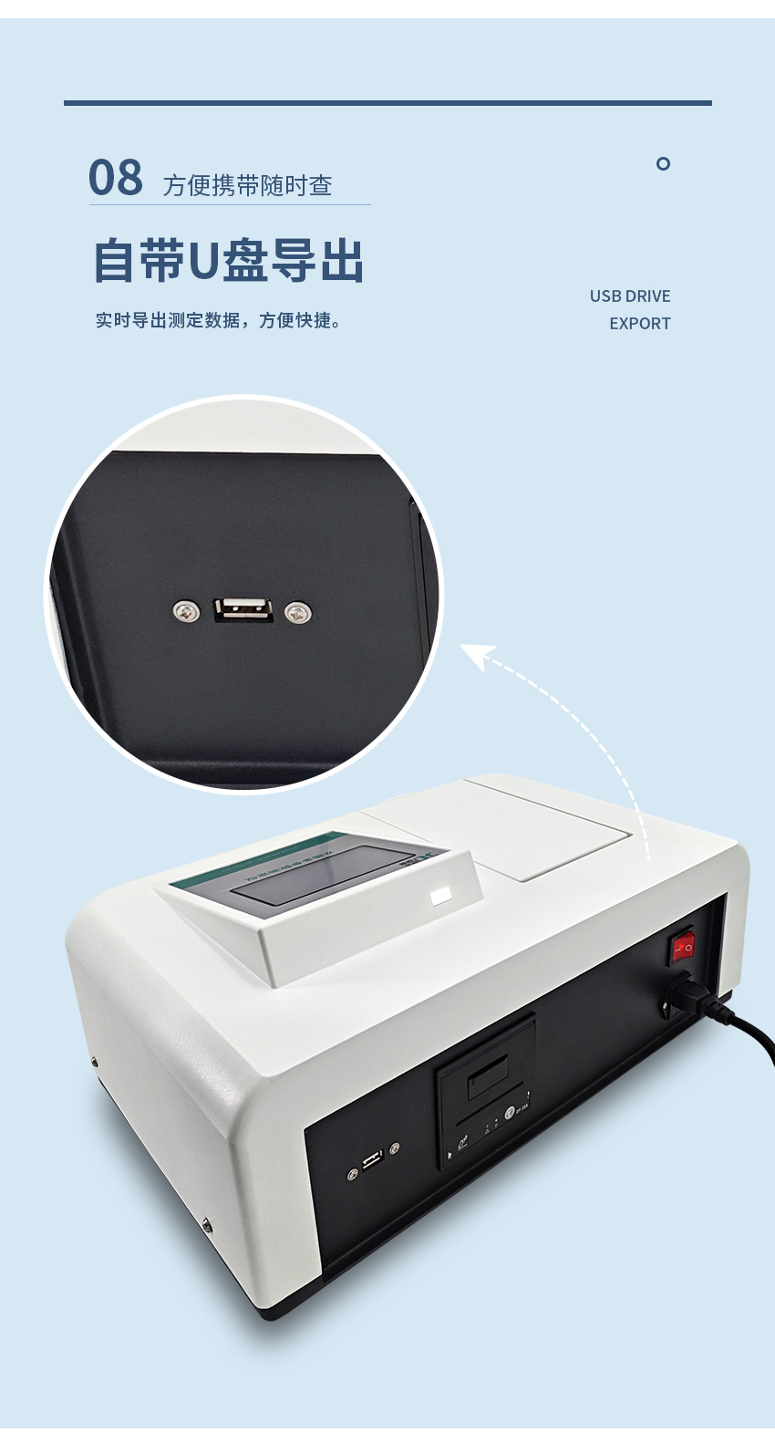 10. 數據輸出多樣性:標配微型打印機,可即時打印當前數據,也可隨時查詢打印已保存數據。同時配備USB數據傳輸接口,能快速將數據保存至U盤。滿足不同場景下的數據輸出和存儲需求。