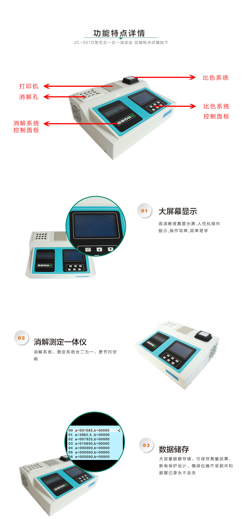 產品名稱:JC-501D型COD氨氮總磷總氮濁度五參數水質檢測儀