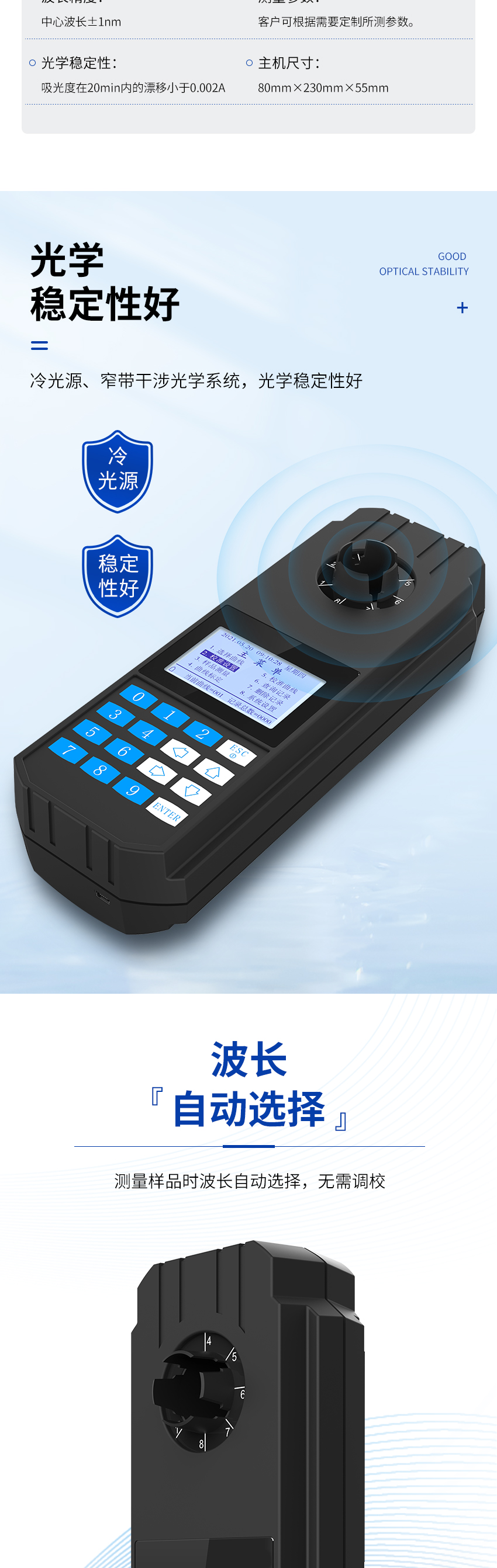 2、測量樣品時波長自動選擇,無需調(diào)校。