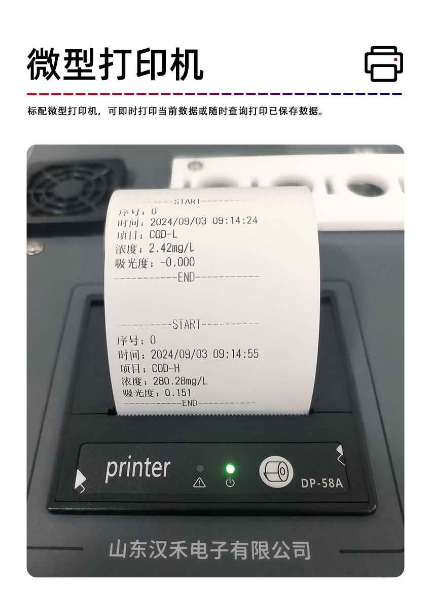 11. 標配微型打印機,可即時打印當前數據或隨時查詢打印已保存數據。