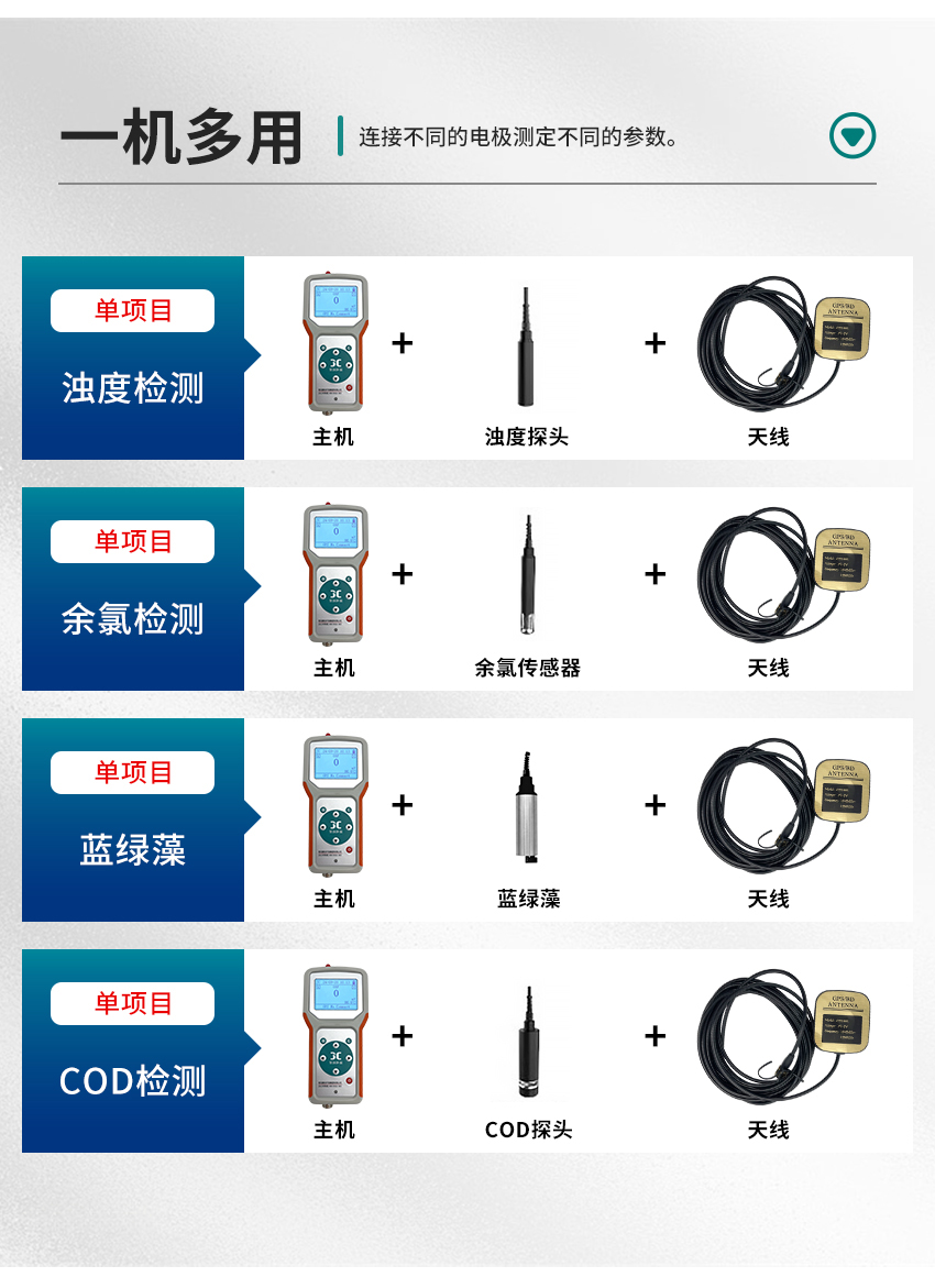 聚創JC-A系列便攜式多參數測定儀采用電化學法結構設計,通過選配水質或土壤常規檢測參數傳感器,可對水質的PH、ORP、濁度、色度、余氯、氯離子、溶解氧、透明度、電導率、硝酸鹽、溫度、懸浮物、污泥濃度、葉綠素、藍綠藻、COD、氨氮、氟離子、水中油等項目進行快速測定,也可準確測量各種土壤的溫度、水分、PH、鹽度等,內置鋰電池,適合野外水質及各種土壤的快速檢測。