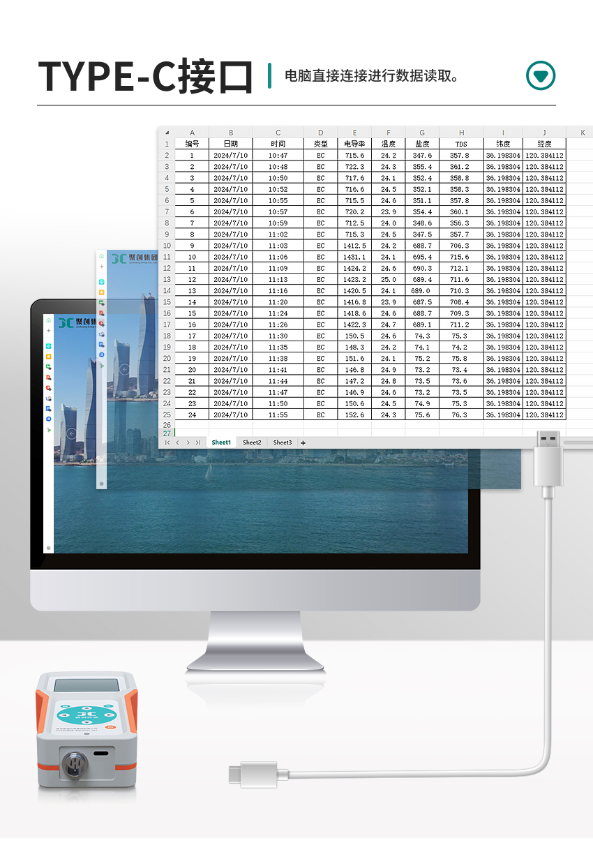 8.可通過TYPE-C口與電腦直接連接進行數據讀取,方便、快捷。