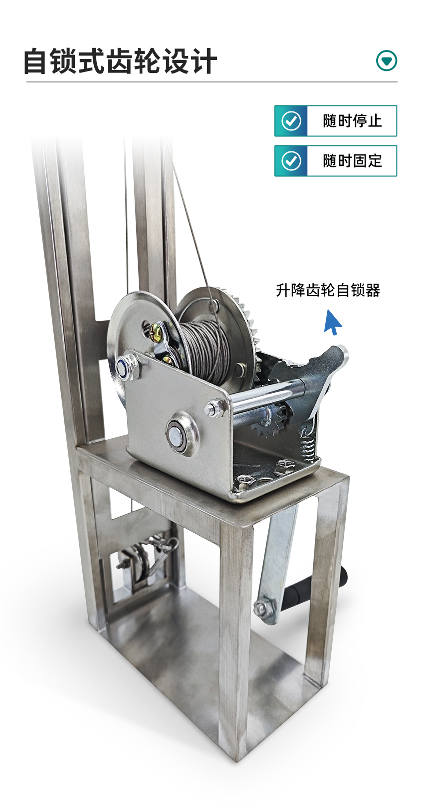 4.自鎖式齒輪設計,隨時停止,隨時固定。