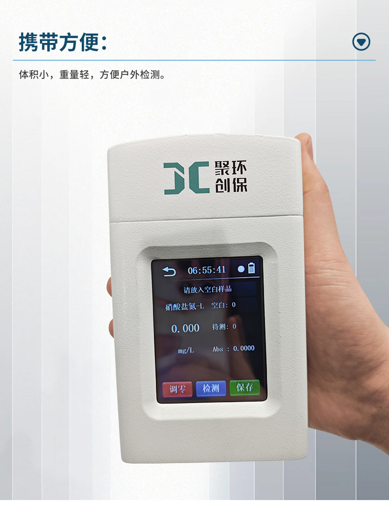 聚創JC-XSY-100K型手持式硝酸鹽氮測定儀采用輕量化外殼及人性化程序設計,能快速準確地測量大、中、小型水廠及工礦企業、生活或工業用水的硝酸鹽濃度,以便控制水的硝酸鹽達到規定的水質標準。