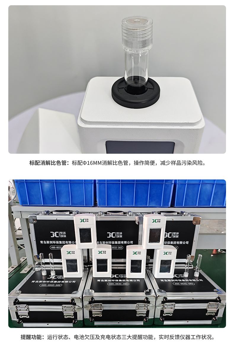 聚創JC-JQ-100K型手持式甲醛測定儀采用輕量化外殼及人性化程序設計,適用于生活飲用水及其他水源水中甲醛的檢測,以便控制水的甲醛達到規定的水質標準。