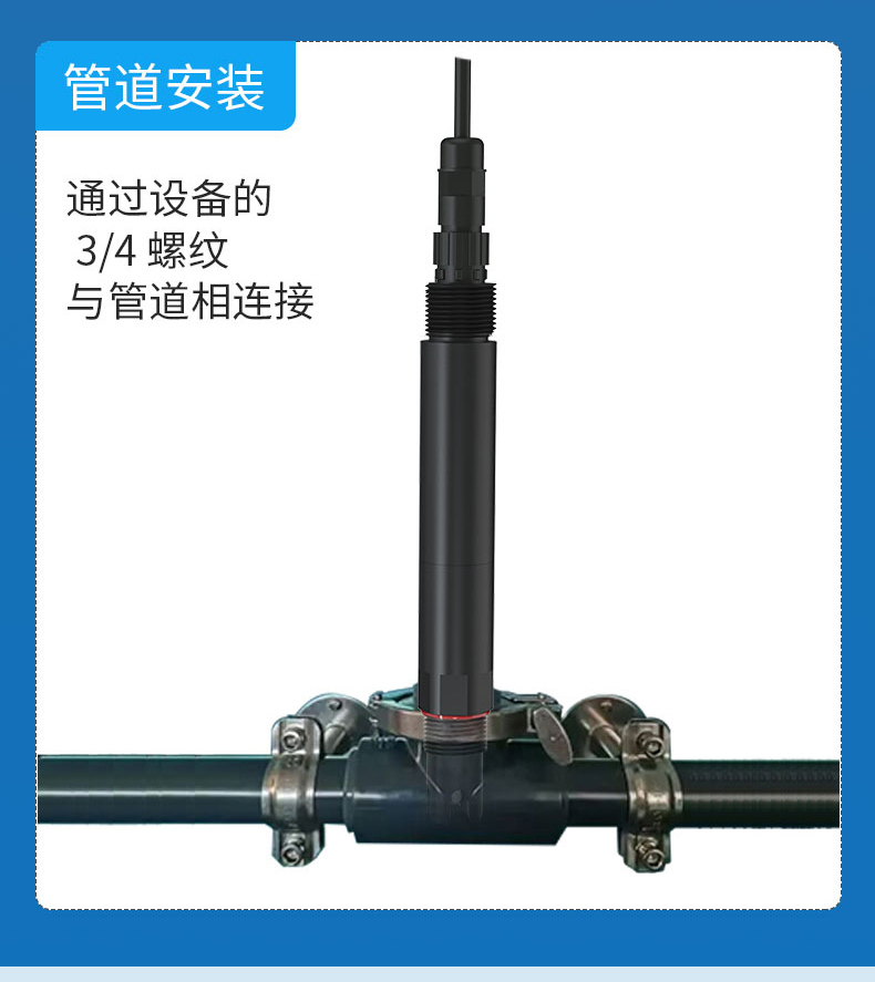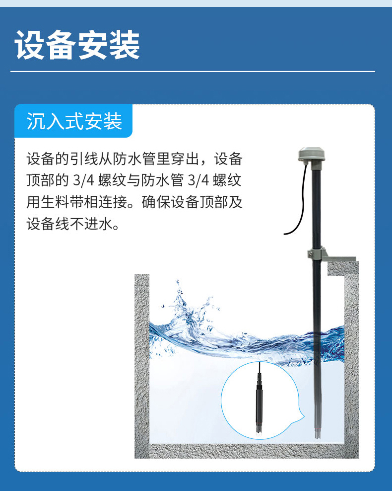 4.傳感器應安裝時應考慮水位變化,確保設備處于水位10cm以下,且需安裝于水流緩慢無氣泡的區域;