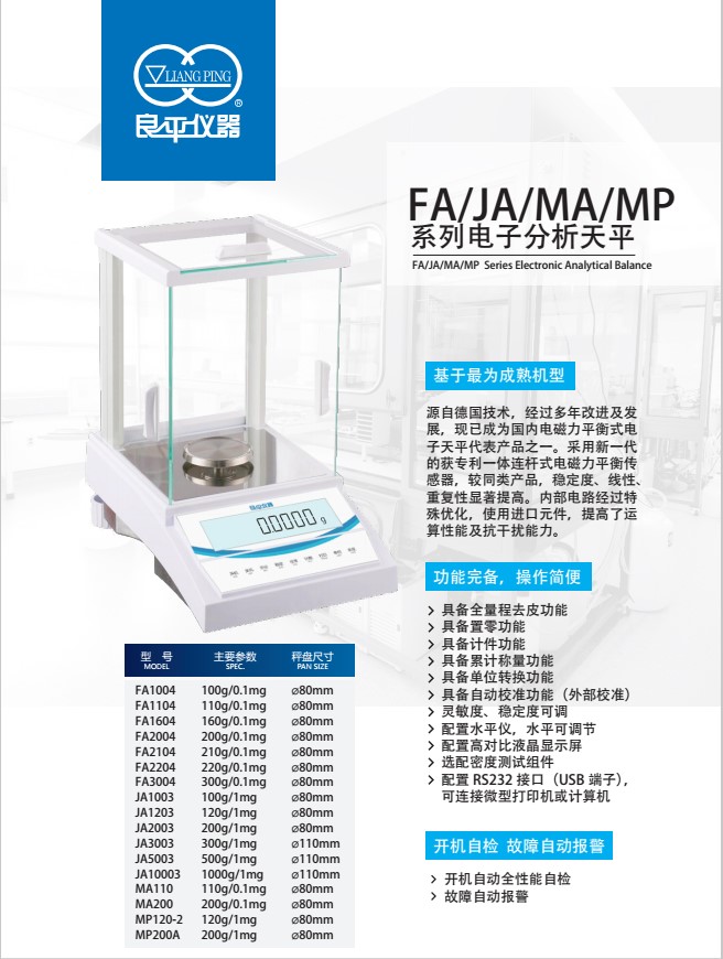 產(chǎn)品名稱:上海良平FA/JA系列分析天平
