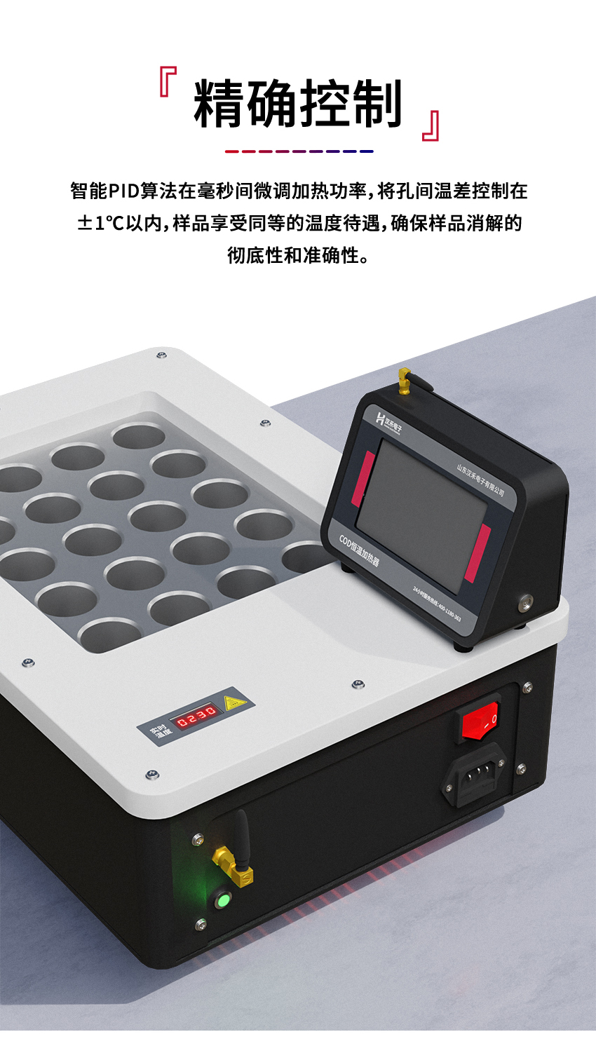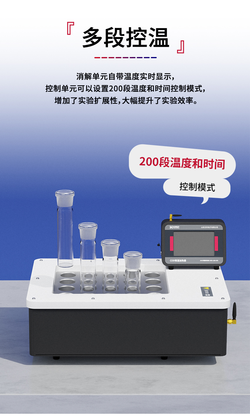 H - S101系列COD恒溫加熱器的消解單元能夠實時顯示溫度,控制單元可設置多達200段的溫度和時間控制模式,極大地增加了實驗的擴展性,顯著提升了實驗效率。