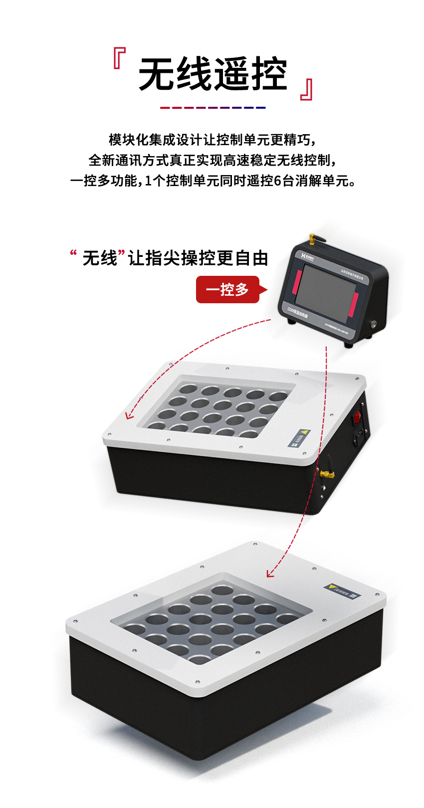 采用模塊化集成設計與全新的通訊方式,擺脫了有線拖拽式連接的束縛,真正實現高速穩定的無線控制。該設備具備斷連保護和通訊故障報警等功能,控制單元可拿到通風櫥外進行操作,從而保護實驗員免受酸霧侵害。