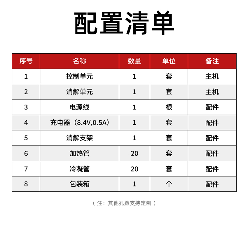 控制單元170mm×110mm×80mm;消解單元以實際定制款式尺寸為準 |