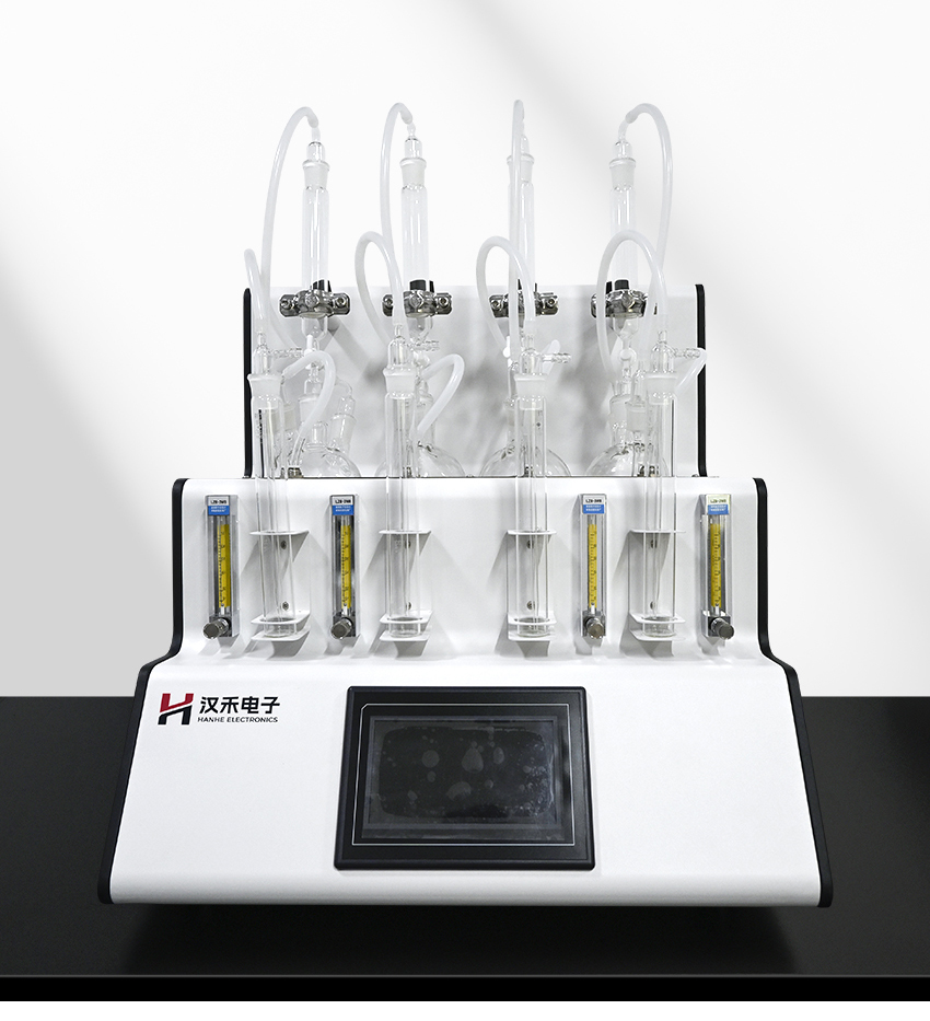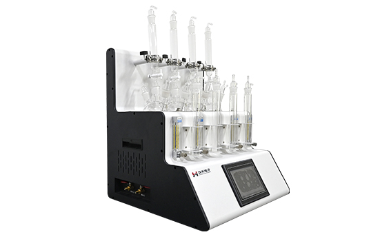 采用垂直加酸、氮氣吹脫、酸化吸收一體化設計。鹽酸入口、氣體進口、樣品出口三口一體但又相互區分,操作過程互不干擾。