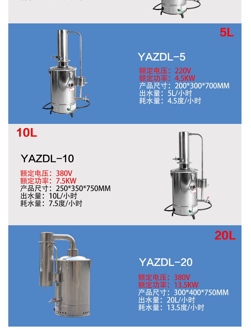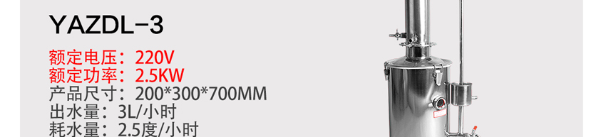 產品名稱:YAZDL-3/5/10/20型不銹鋼電熱蒸餾水器自控款