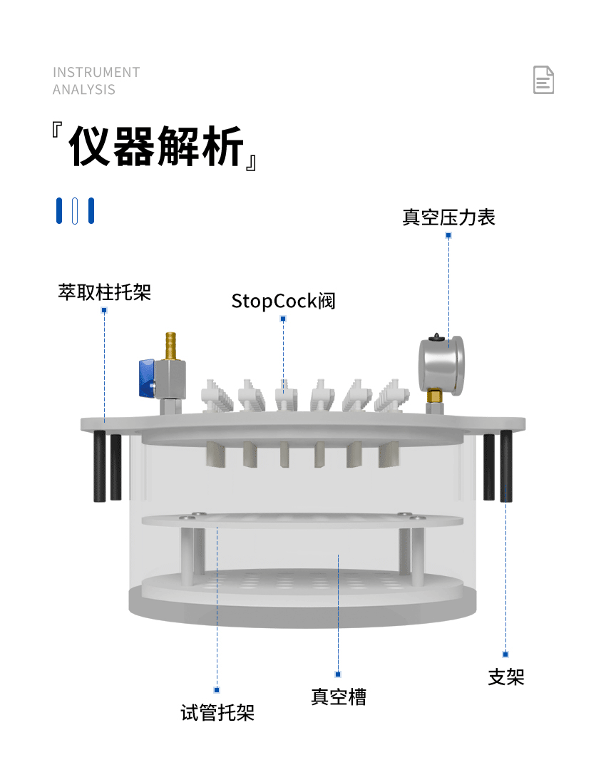 7. 固相萃取裝置的內(nèi)部試管架由聚四氟乙烯制成,因此具有極高的耐腐蝕性。
