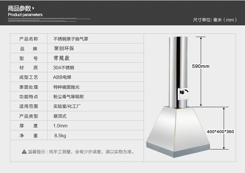 1、主體采用不銹鋼結構,配有電動調節系統控制風量,排風性能穩定,抗腐蝕性強,常用于實驗室通風。